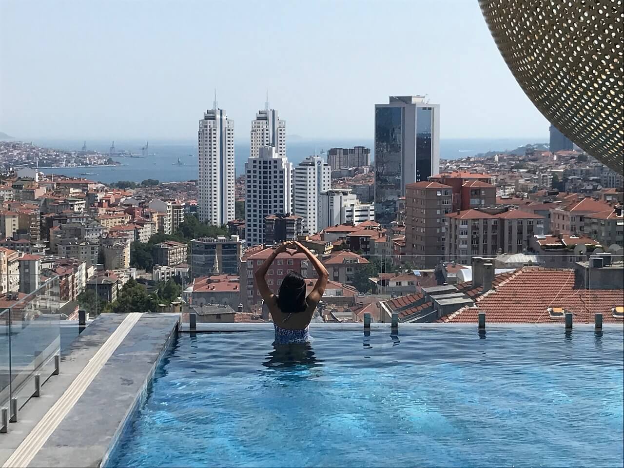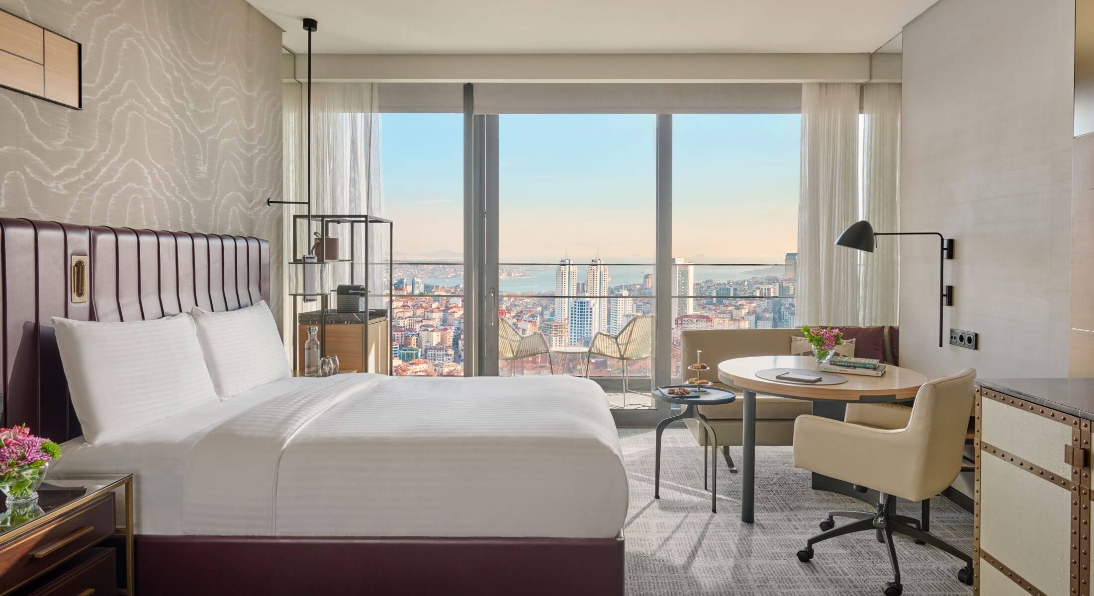 С первых минут возникает ощущение пространства и высоты. Панорамные окна стирают границы между интерьером и городом, и Стамбул словно становится частью вашего номера. Днём он живёт своей привычной жизнью — движение, свет, ритм. Ночью превращается в бесконечное море огней, за которым можно наблюдать часами.